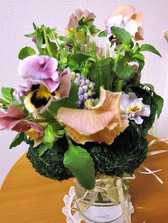 パンジーやヒヤシンス、青麦等など・・・ お花だけはすっかり春っぽいものがそろって。