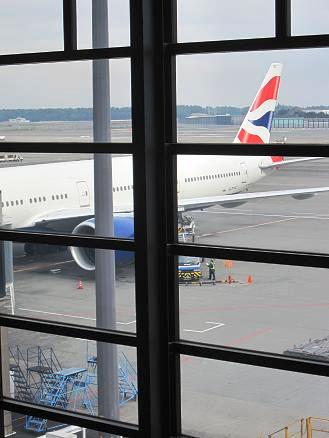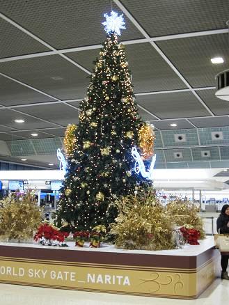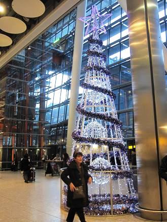 Naritaのツリー(左)とHeathrowのツリー(右)。あ。真ん中は飛行機ね(ボーイング777)