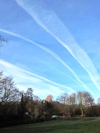 こーんな真っ青な空。飛行機雲もくっきり・・・ キノコ、生えているしー S君は、相変わらず水遊びが好き。