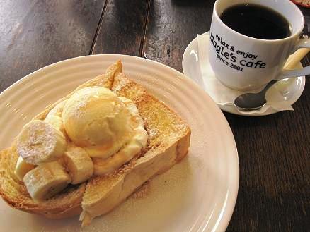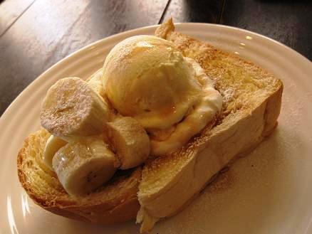 バナナメープルトースト。 アイスもたっぷり・・・ ボリューム満点♪ お供にはコーヒーを。