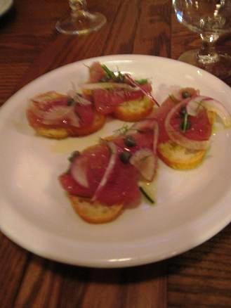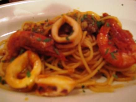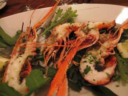 前菜8種、海老の塩焼き、パスタ(魚介ペスカトーレ)、デザートのアイスまでよく食べ、よく飲んだ― 4人で白&赤の2本あけました。