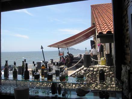 お店は道路からちょっと入ったところにあるんだけど、3階建ての一番上にあるので海が見えてきれいだった。