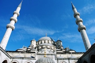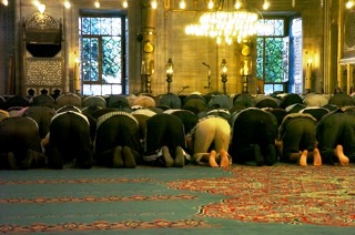 *ヨーロッパ側に戻り、モスクの中で涼む(おいおい!) そしたら礼拝が始まったので見学ー