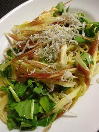 *みょうがとシラス、ルッコラの和風パスタ
