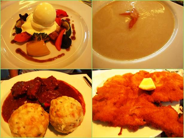 旦那の食べた前菜がすごくおいしくて、真似したい感じ~ 私のスープもおいしかったけど。 メインはウィンナーシュニッツェルにした。デカっ!