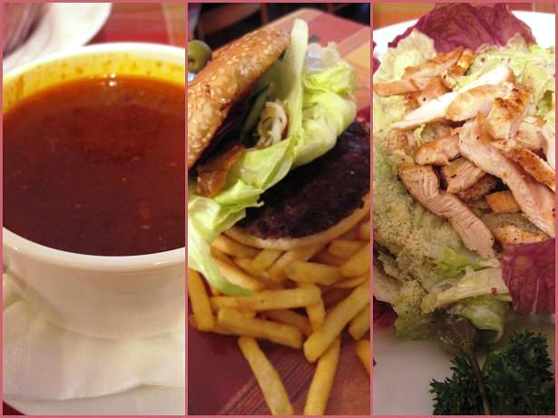 グヤーシュをシェア、ハンバーガーとシーザーサラダ。この周辺のお店で、Herendのアンティークのお皿を買ってもらいました。