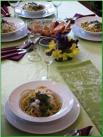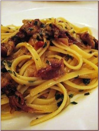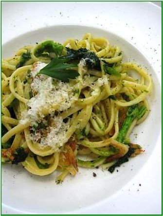 *菜の花と桜エビのリングイネ…ココのところパスタばっか食べてたけど、リングイネの食感、おいしいねーやっぱり♡ 桜エビ持参で行けばそっちで作れそう。 菜の花はブロッコリーでもいいってことなので。