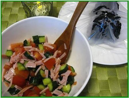 野菜マリネとおにぎり~。